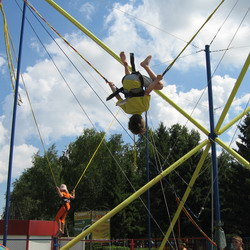 Одним из любимых детских аттракционов в парках является «Кенгуру», где дети совершают огромные прыжки на резиновых тросах, закрепленных на поясе – очень похоже на кайтинг !!!